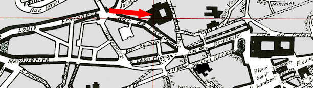 Bruxelles. La flèche indique l'ancien couvent